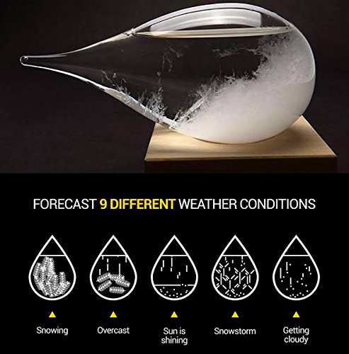 - FUNCTIONALITY – This Storm glass actually predicts weather just as it did in Europe in the 19th century through stunning and gorgeous patterns inside the glass to predict when it will be sunny, cloudy, foggy, snowy, stormy, etc.