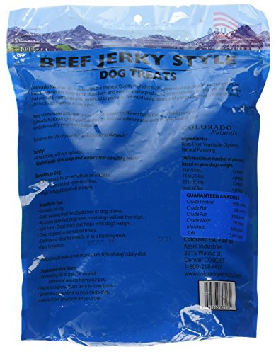 -. Binding : Misc. -. Brand : Colorado Naturals -. EAN : 0647263801182 -. Feature : 100% MADE IN THE USA. USA Born and Raised Beef. We never add any fillers or any products that are imported. We guarantee that all product is USA born and USA bred / YOUR DOG WILL LOVE THESE TREATS. Slow Roasted to a flavor that dogs go nuts over! / PERFECT FOR TRAINING. Training your dog will be easier with these treats. Dogs love these so much that they respond much quicker knowing the reward that they're about to get / HEALTHY AND NATURAL. Highest Quality Ingredients Only. Helps to remove Tartar. . No hormones, chemicals or artificial flavoring / 100% GUARANTEE! We guarantee your dogs will love these treats -. Label : Kasel Industries -. Manufacturer : Kasel Industries -. MPN : 80118 -. PackageQuantity : 1 -. PartNumber : 80118 -. ProductGroup : Pet Products -. ProductTypeName : PET_SUPPLIES -. Publisher : Kasel Industries -. Size : 16OZ -. Studio : Kasel Industries -. Title : Beef Jerky Dog Treats. Made in USA with 100% U.S.D.A. Beef. 1Lb by Colorado Naturals -. UPC : 647263801182