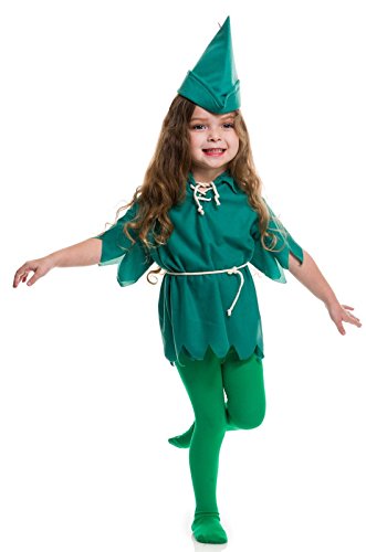 -. Binding : Toy -. Brand : Charades -. Color : Multi-color -. Department : girls -. Feature : Peter Pan or Elf Costume includes Tunic with Rope Tie. Hat with Feather and matching GREEN tights. / Green / X-Small 4-6X, Small 6-8, Medium 8-10, Large 10-12 and X-Large 12-14 / Machine Wash Cold. Tumble Dry Low. Polyester. -. Label : Charades -. Manufacturer : Charades -. MPN : 84077 -. PackageQuantity : 1 -. PartNumber : 84077 -. ProductGroup : Toy -. ProductTypeName : TOYS_AND_GAMES -. Publisher : Charades -. Studio : Charades -. Title : Peter Pan Kids Costume
