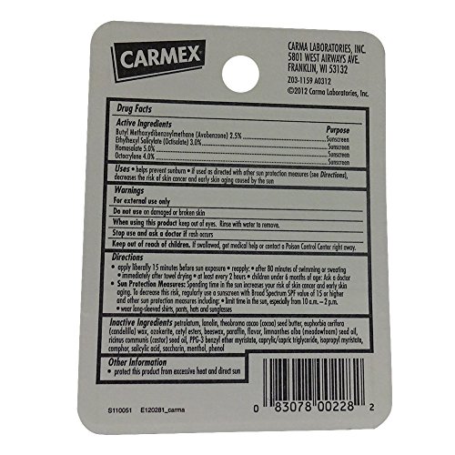Carmex Ultra Smooth Lip Balm Stick SPF 15, Pomegranate 0.15 oz (Pack of 12)