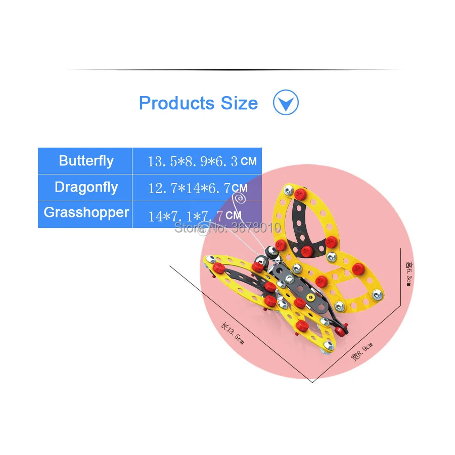 Styles:Dragonfly Butterfly Grasshopper metal model kits