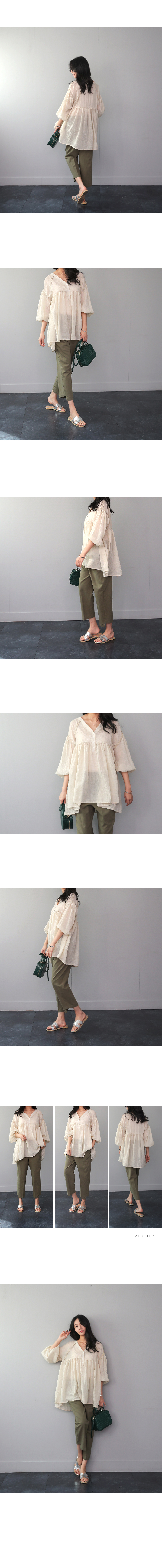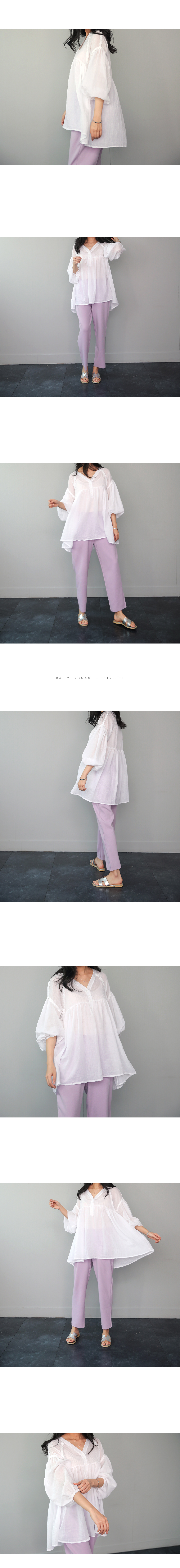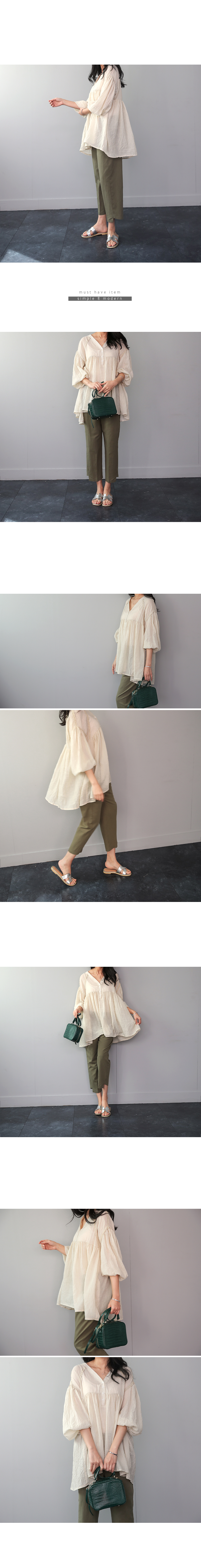 얇은 아사면 소재로 보들 보들 거즈처럼 촉감이 좋은 코튼 100% 소재감이 기분 좋은 네추럴한 무드의 퍼프 블라우스에요