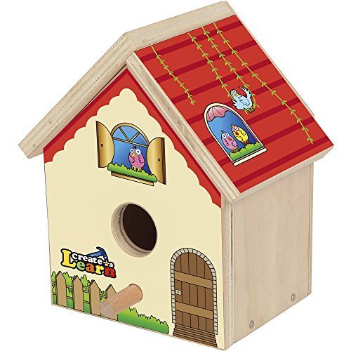 -. Title : Birdhouse Create & Learn Birdhouse wood craft kit with stickers with suction cups to attach to a glass surface