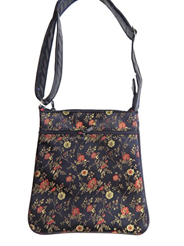 US HANDMADE FASHION CROSS OVER BODY BAG WITH "PINK GOLD FLOWERS" PATTERN SHOULDER BAG WITH AD...