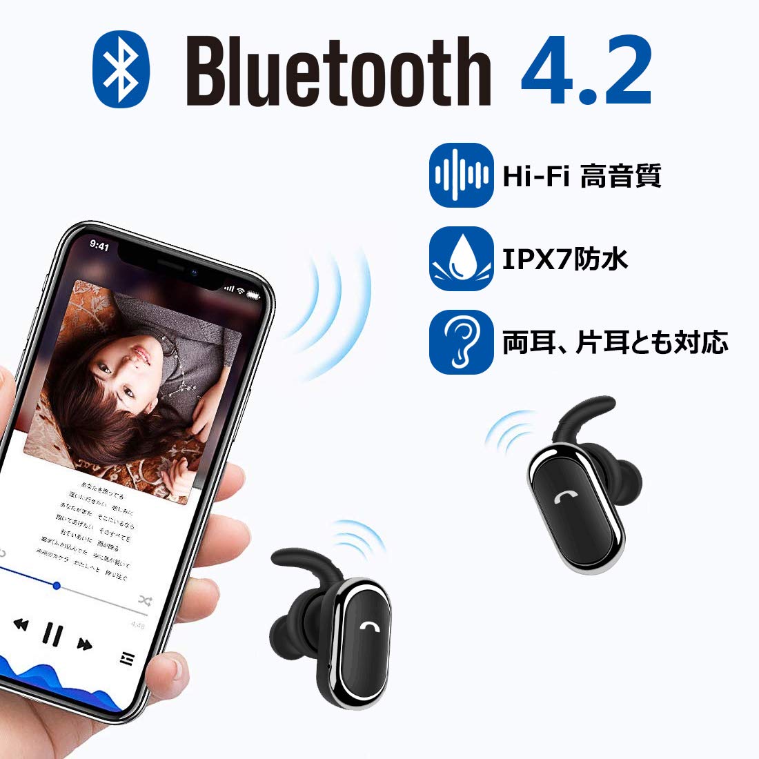 【タッチ式ワイヤレスイヤホン&両耳通話対応】タッチ式で、耳元を軽くタッチするだけで、音楽再生/一時停止、通話開始/終了/拒否/次の曲/Siri起動/リダイヤルなどの操作をすべて実現可能。最新の両耳通話技術より両イヤホンハンズフリー通話できます。