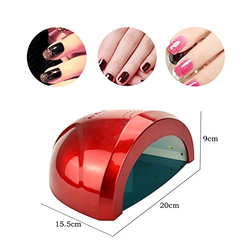 Studio : CrazySound Publisher : CrazySound Binding : Misc. Product Description There are two kind of nail glue in the market, one is suit for LED lamp, another one is suit for UV Lamp. UV Gel can shape your nail and widen the nail tips. This gel is chosen by most nail salon. And many beauty fond of this kind of gel. While LED Gel have various colors to choose from. 48W Nail dryer will fulfill all your need at the same time. Features: Press the ON/OFF button with 2 second, you can change the power from 48W to 24W. HOW TO USE After painting the gel or the nail polish, just put your hand straight into the machine. When use this machine, you can dry 5 nails a time together. It can work automatically when your fingers put in and close automatically when your hands take out. You can also choose timer:5S/30S/60S Just wait for your beautiful nail. Specification: Height:7.5 cm Timing:5/30/60 seconds Material:ABS Plastic Piano Bake Lacquer Input Adapter:AC 100-240V; 50/60HZ;1.0A Output Adapter:DC 24V/1.5A Color:Red/Black Specification:15cm x 19cm x 8.5cm/5.91" x 7.49" x 3.35" Suitable Crowds:People who love DIY 0