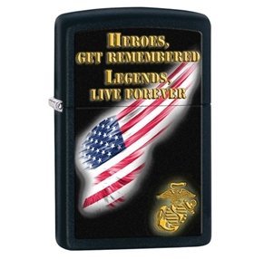 Studio : Zippo Manufacturing Company Publisher : Zippo Manufacturing Company Binding : Sports Product Description Zippo has produced hundreds of thousands of lighters with military themes. The Zippo lighter was practically standard issue for military personnel in WWII, when Zippo earmarked all lighters produced to go to the military. Every ship in the U.S. Navy has been commemorated on a Zippo lighter; every major U.S. military engagement since WWII has been immortalized with its own Zippo lighter. Zippo honors the United States Marine Corps with this genuine Zippo black matte windproof lighter imprinted with the USMC insignia and stylized American flag. Refill with Zippo premium lighter fluid for dependable, long-lasting service. Distinctive layered hinge and bottom stamp authenticate this lighter as a genuine Zippo matte lighter. Packaged in an individual gift box with Zippo Lifetime Guarantee. 0