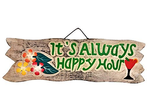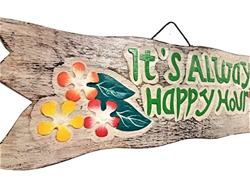 20" x 6.5" HANDCARVED & PAINTED WOOD "IT'S ALWAYS HAPPY HOUR" BEACH DECOR SIGN!