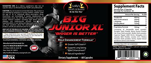 -. Title : BIG JUNIOR XL, BIGGER IS BETTER,2+ inches plus in 60 days PENIS ENLARGEMENT, INCREASE ENERGY AND ENDURANCE, 100% NATURAL, 100% MADE IN USA,60 capsules per bottle,INCREASE LIBIDO!