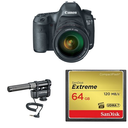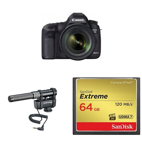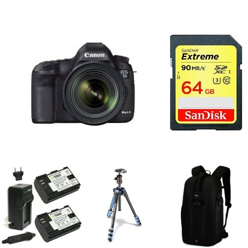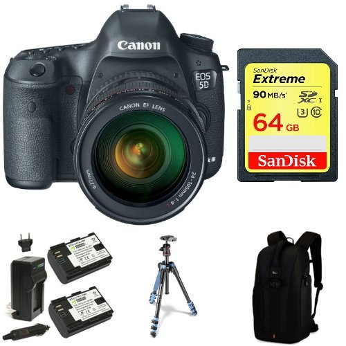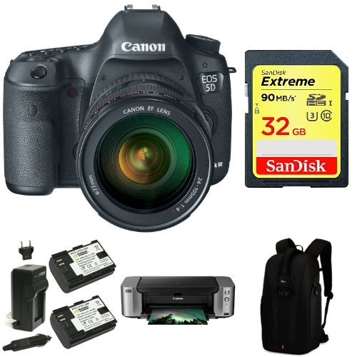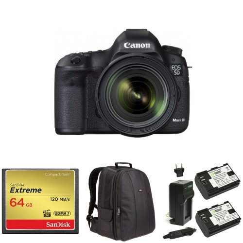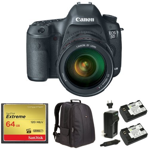 The Canon 5260B009 EOS 5D Mark III 22.3MP Digital SLR Camera with EF 24-105mm f/4L IS USM Lens gives supercharged EOS performance and full frame, high-resolution image capture and is designed to perform. Special optical technologies like 61-Point High Density Reticular AF and extended ISO range of 100-25600 make this it ideal for shooting weddings in the studio, out in the field and great for still photography. Professional-level high definition video capabilities includes a host of industry-standard recording protocols and enhanced performance that make it possible to capture beautiful cinematic movies in EOS HD quality. A 22.3 Megapixel full-frame Canon CMOS sensor, Canon DIGIC 5+ Image Processor, and shooting performance up to 6.0fps provide exceptional clarity and sharpness when capturing rapidly-unfolding scenes. Additional technological advancements include an Intelligent Viewfinder, Canon's advanced iFCL metering system, High Dynamic Range (HDR), and Multiple Exposure.
