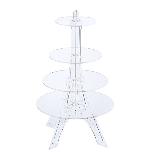 -. Feature : This Eiffel Tower 4 tier round cupcake stand is made of strong acrylic, is ideal for all type of party. / The tier 1: 150mm,about 6",the No. of cakes average is 4pcs. / The tier 2: 200mm,about 8",the No. of cakes average is 7pcs. / The tier 3: 250mm,about 10",the No. of cakes average is 12pcs. / The tier 4: 300mm,about 12",the No. of cakes average is 12pcs,the total high is 20.9inch.