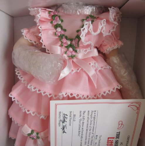 - Feature : Shirley Temple "Littlest Rebel" Dolls of the Silver Screen is a Twentieth Century Fox, Danbury Mint production, made in Taiwan. Box has Movie Year 1935, Doll produced 1986. / INCLUDES: Shirley Temple Littlest Rebel Doll approx. 14" tall with blond hair. Doll wears a layered pink Dress with white lace & pink floral trim, white Pantaloons & Stockings, Pair of white Shoes, & comes with a Doll Stand for Display, & a Certificate of Authenticity. / DOLL is NEVER REMOVED from Box w/bubble wrapped hands & plastic wrap/hair net on head.