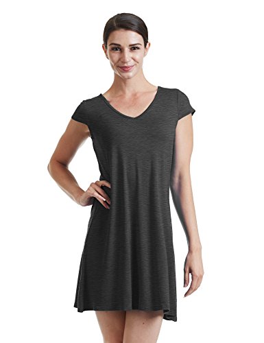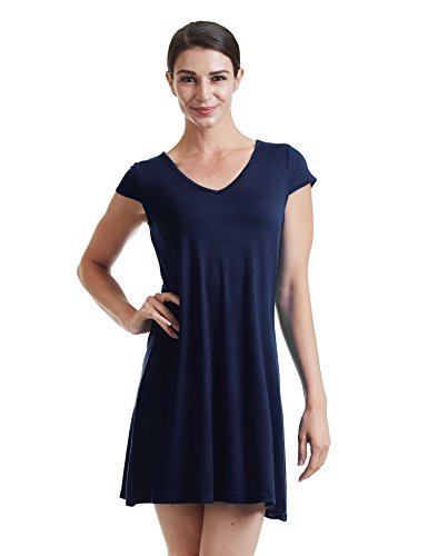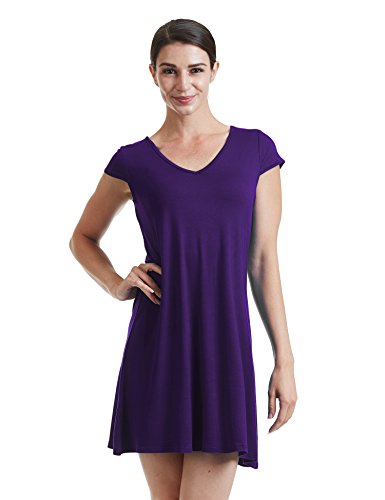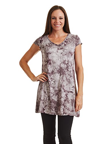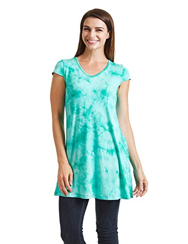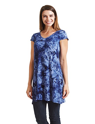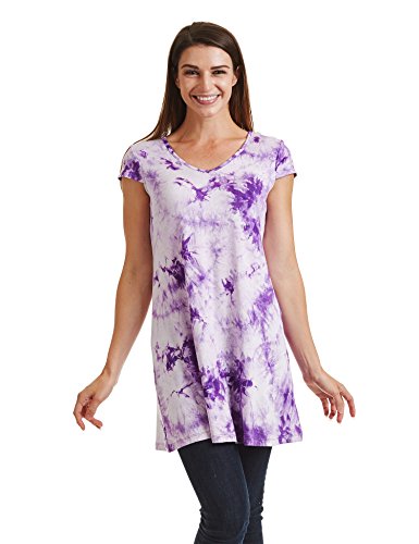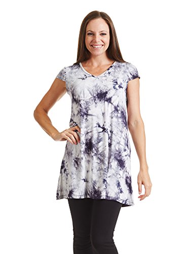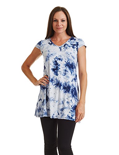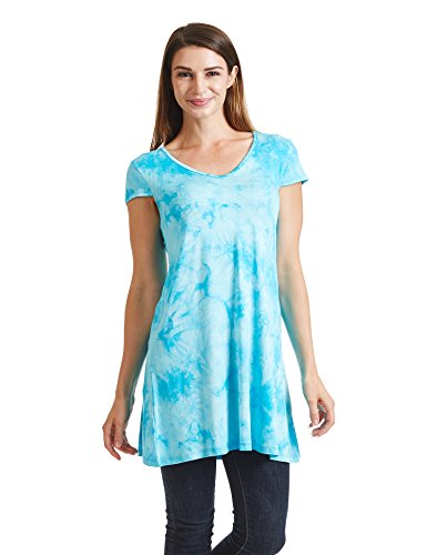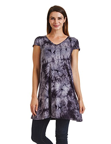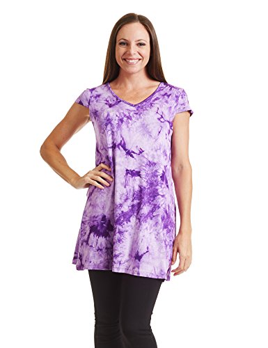 This all over tie dye v neck cap sleeve short dress in soft fabric with long sleeves and a gently flared hem. This super comfy mini dress has a V neckline and short cap sleeves.