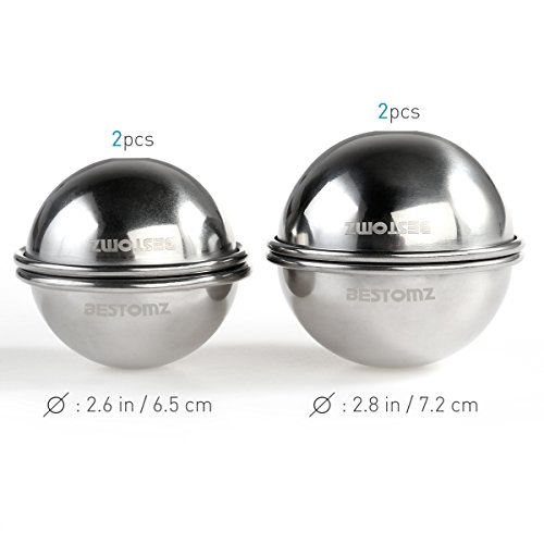 BESTOMZ Stainless Steel DIY Bath Bomb Molds for Making Your Own Bath Bombs -- 4 Molds Sets 2 Size Diameter 2.6'' And 2.8''