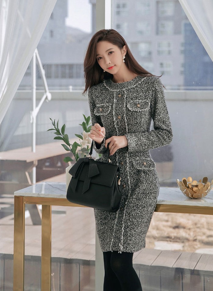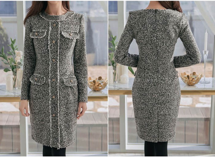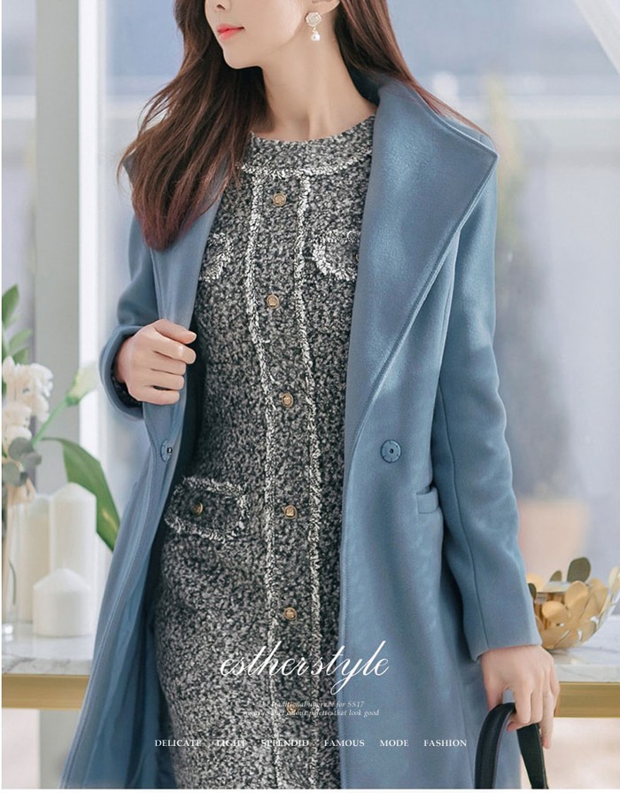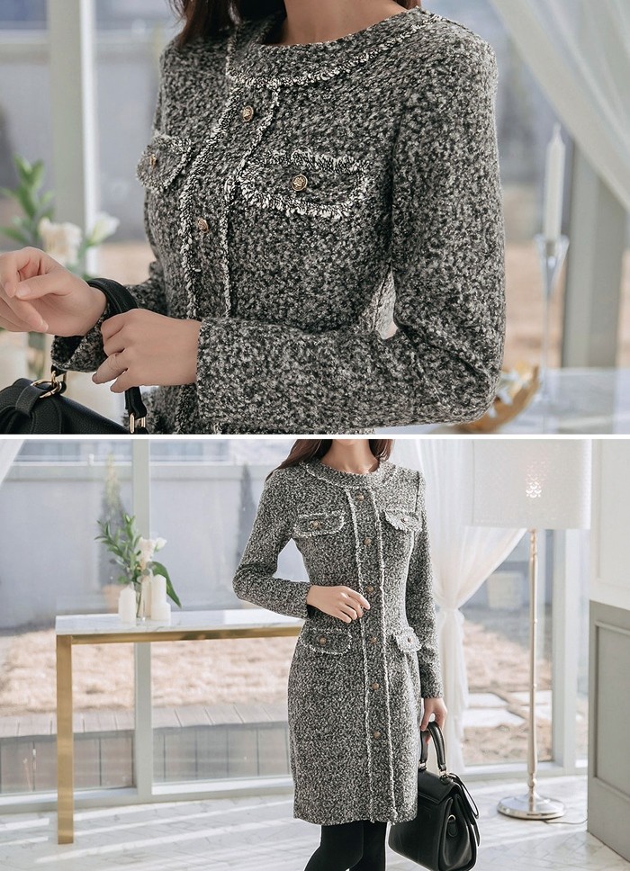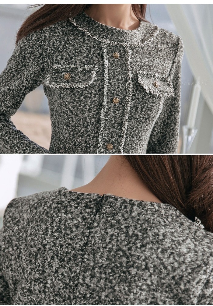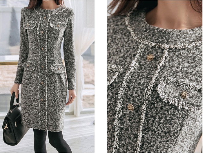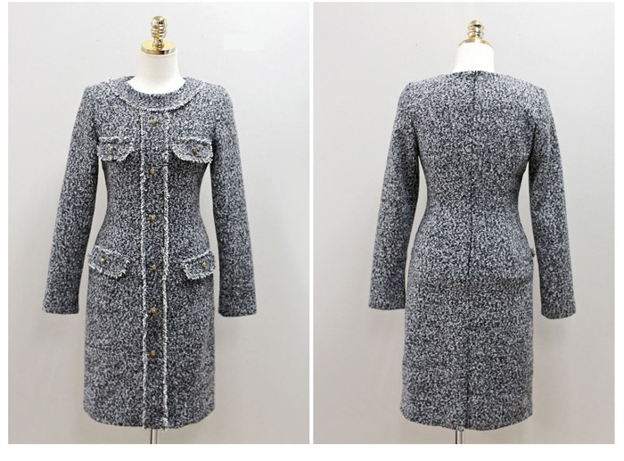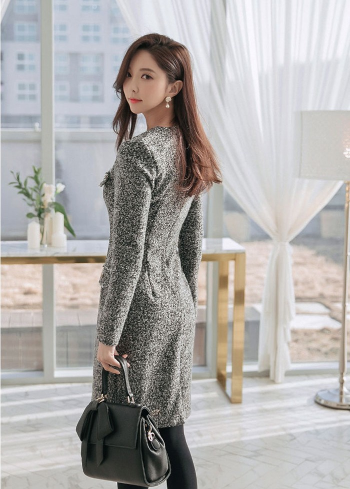 商品名:ワンピース 長袖 膝丈 きれいめ 通勤 ウール混