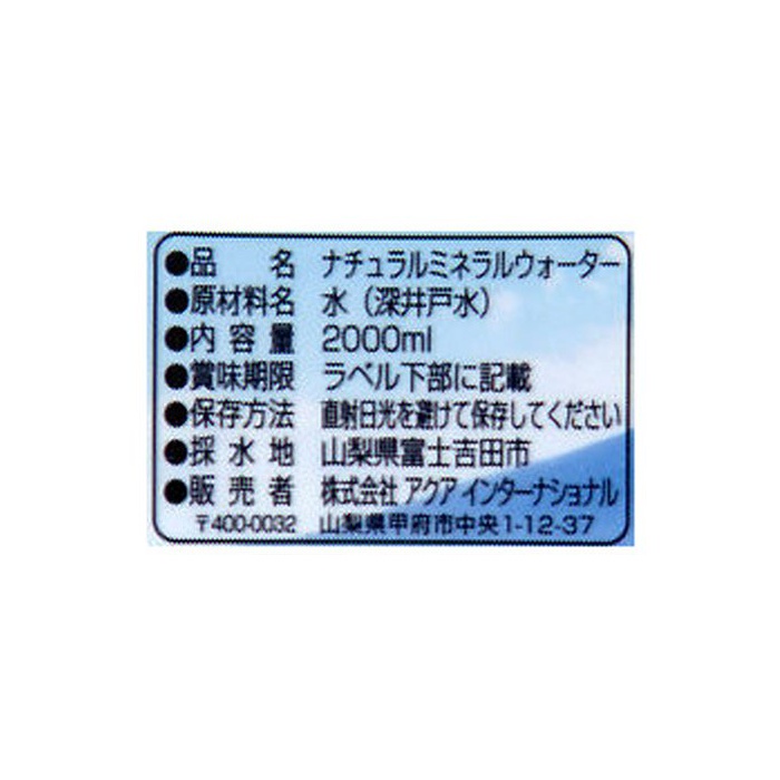 원본상품명: アクアインタ?ナショナル富士山バナジウムウ?ォタ? 2L×6本