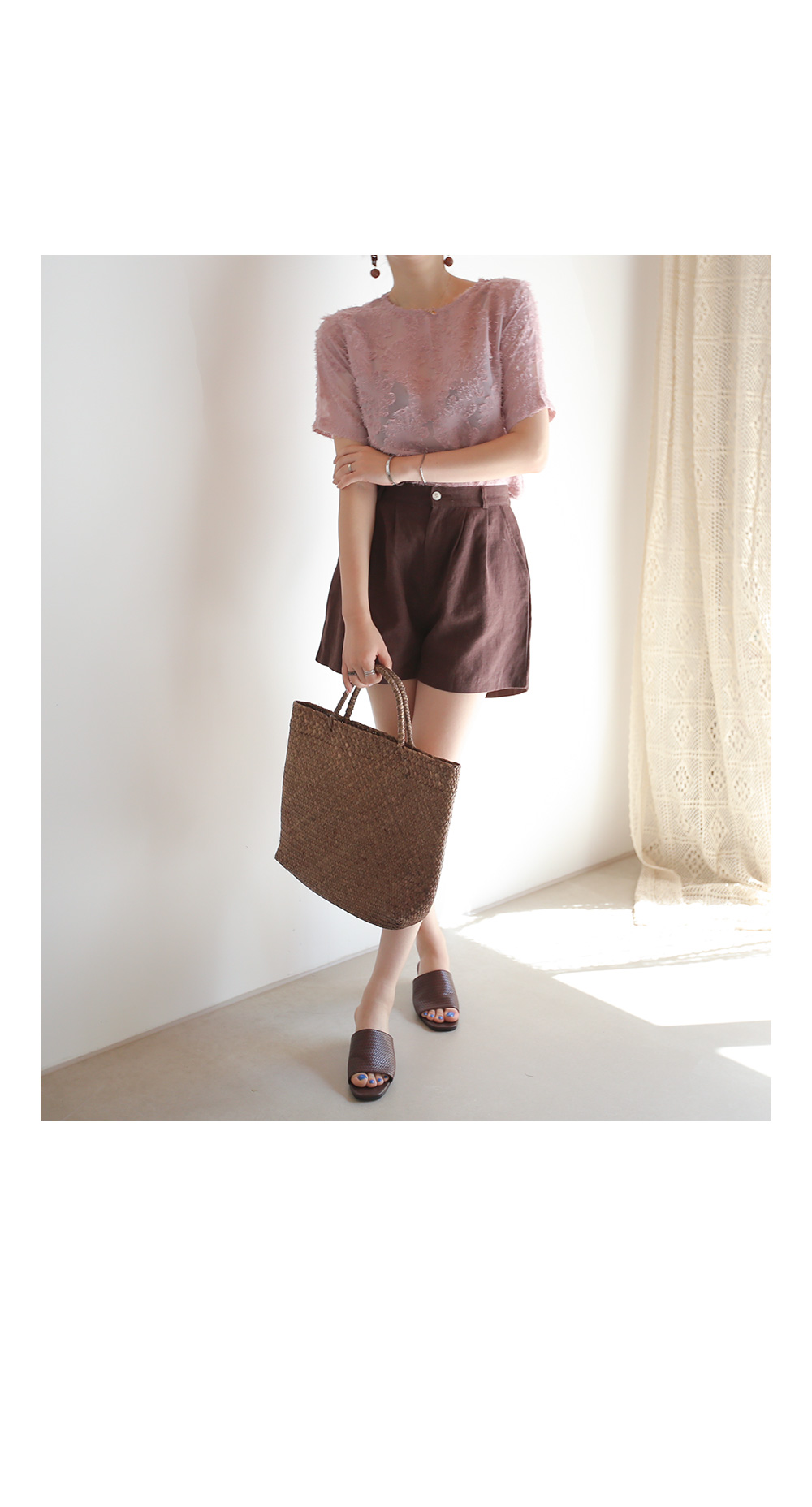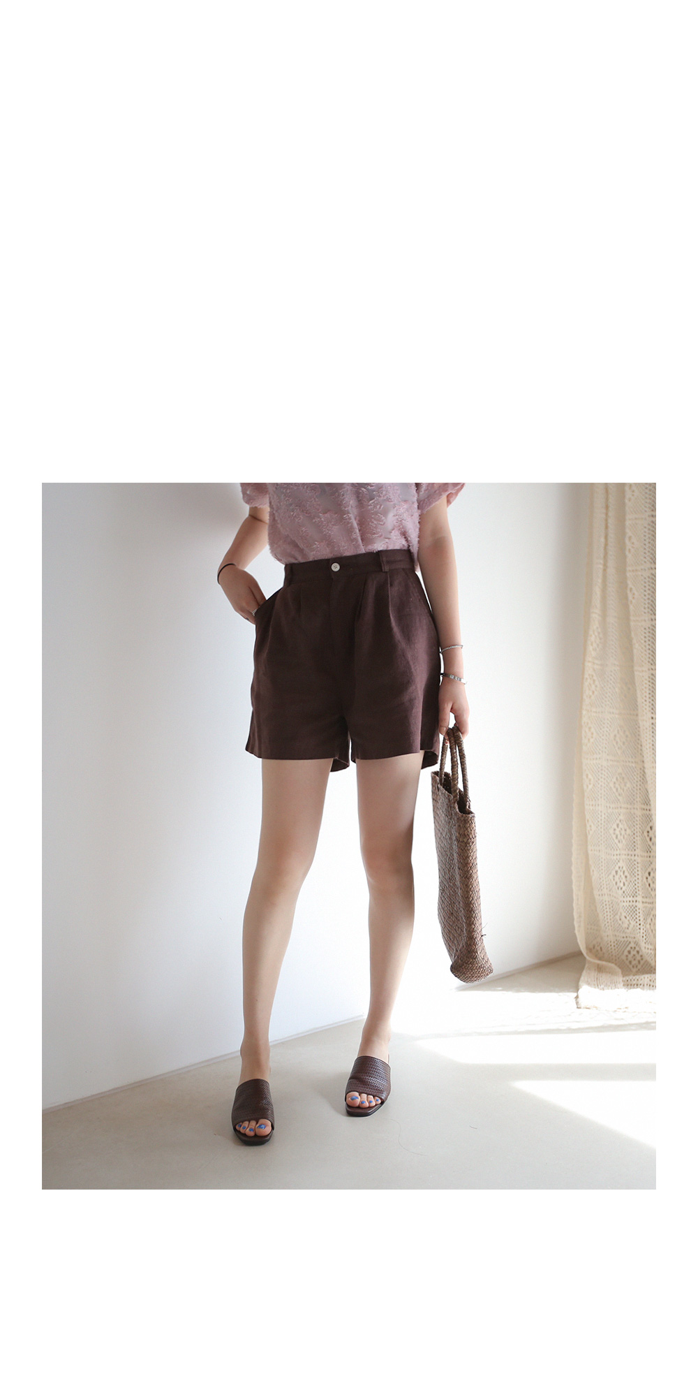 가벼운 린넨 소재로 제작된 반바지에요