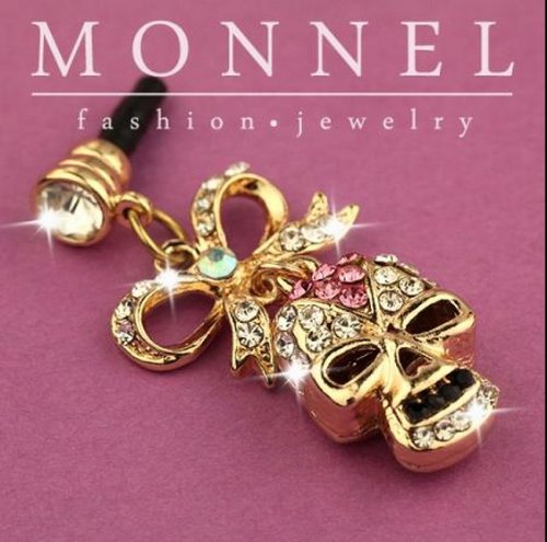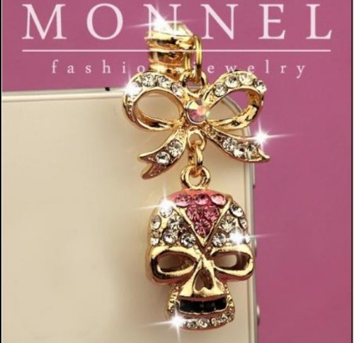 ip157 Cute Skull & BOW Crystal Anti Dust Plug Cover Charm for iPhone 4 4S by Monnel