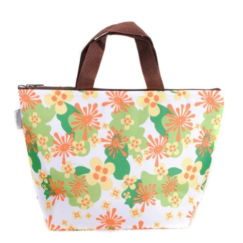 LedChoice Insulated Cooler Waterproof Women's Lunch Picnic Tote Bag Travel Zipper Organizer Box (Green Leaf)