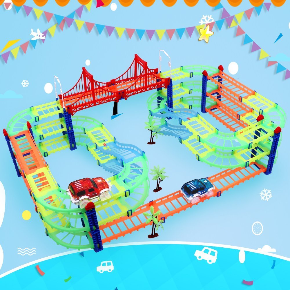 You can play the night and play bright and more popular splicing to break the traditional color of a single track car, car, LED colorful light, night light design orbit.