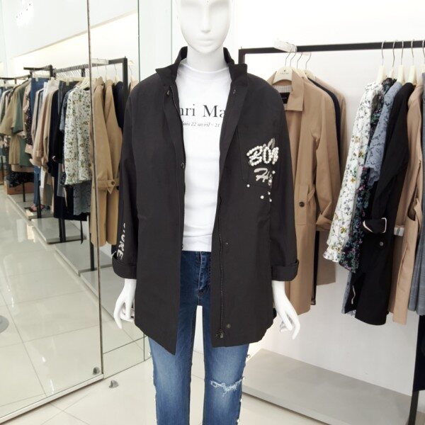 나이스크랍 적당한길이감의 진주장식이 너무 이쁘게들어간 야상정퍼입니다강추드려요~~^^