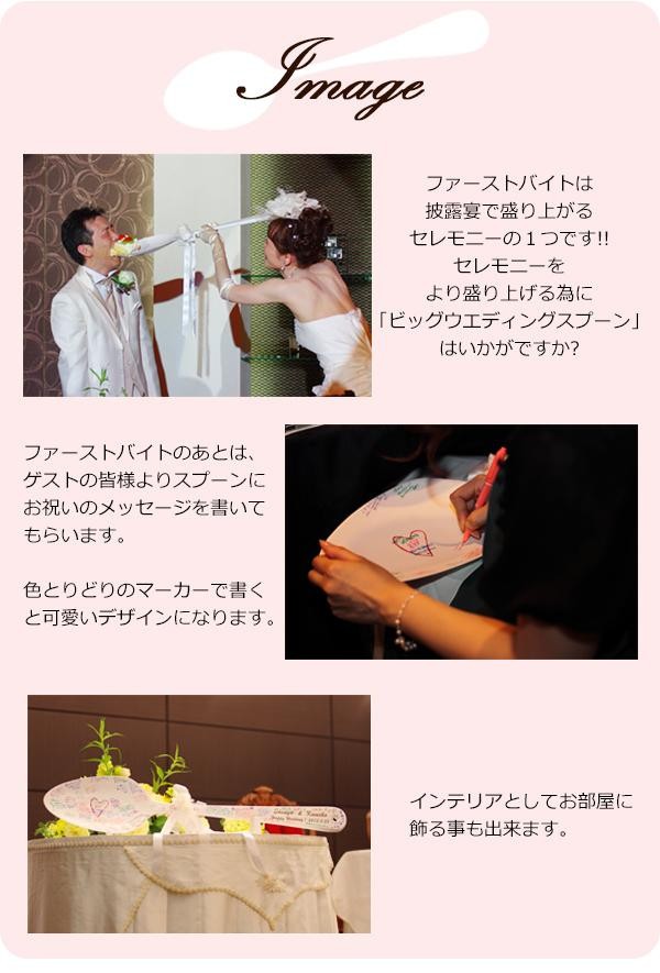| ファーストバイトは、披露宴で盛り上がるセレモニーの1つです。超デカスプーンでサプライズな演出はいかがですか?楽しい思い出になることと思います。御結婚の贈り物としても最適です。 |