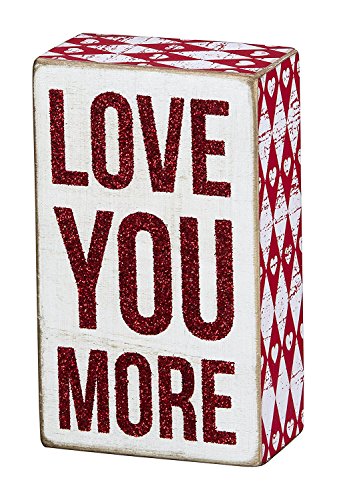 Primitives By Kathy 5" X 3" Wooden Box Sign: "Love You More" Valentines