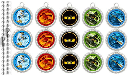 15 Special Assorted Ninjago SILVER Bottle Cap Pendant Necklaces Set 1