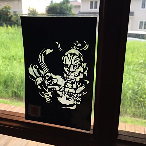 Cutout picture Japanese art collage KIRIE “Todaiji Kongorikishi Un-gyo” Vajradhara(a Deva king who is a guardian of the Buddha) Made by Washi(Japanese paper) Wakakami color, 4” x 6”