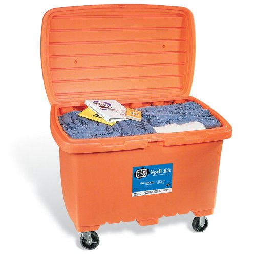 -. Title : New Pig KIT279 330 Piece Spill Kit in High-Visibility Storage Chest, 5" Rubber Wheels, 76 Gallon Absorbency, Orange