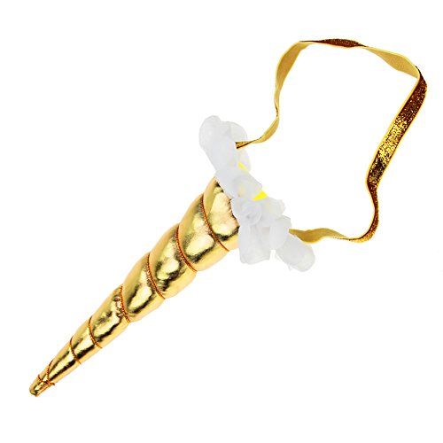 Aiernuo Gold Shiny Unicorn Horn Glitter Elastic Headband Spiral Unicorn Horn Cosplay Decor (Gold)