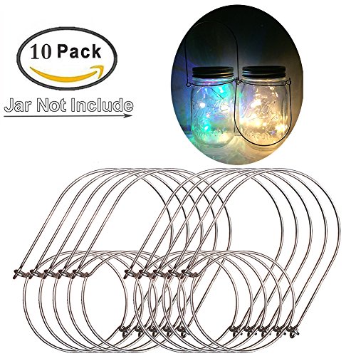 The hangers made of stainless steel wire,Never Rusty for Outdoor Using,Better Properties of Elastic Recovery, and Longer Using-Life. handle-easy designed(the handle can be disconnected to put it around a branch), very easy to using by your hand without any tools, lovely to hang the canning jars to anywhere you want, like as kitchen, Outdoor trees,yard,flowers,ropes,Christmas trees, Best for DIY Mason jar Decor, Mason Jar Lights,Use a Hanging Jar to Hold Flowers, Candles, Solar lights, Lanterns,Gifts, Plants,...