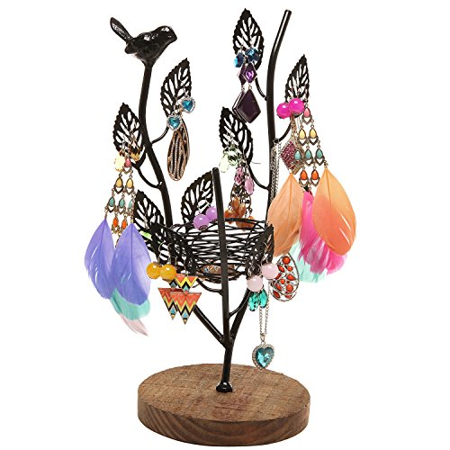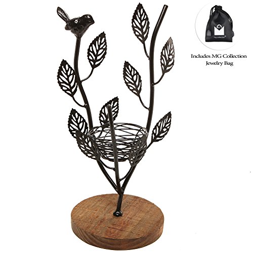 - Feature : This jewelry tree rack is the perfect artistic piece to keep your favorite jewelry ready to grab and go. / Necklaces, bracelets, earrings and brooches can be beautifully hung and displayed from the leaves and branches. The birds nest can be used as a tray for holding rings or other small trinkets. / This jewelry tree is artistically designed for use as a jewelry holder or as an elegant contemporary art display. Perfect for both home and commercial use. / **Official MyGift® product, includes our signature satin jewelry bag. Jewelry shown not included.** / Approximate Dimensions (in inches): 12.5 W X 16.5 H X 6 D.