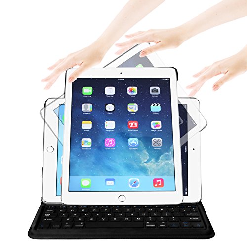 [Description] Specifically designed for 2014 Edition iPad Air 2 (iPad 6th Gen) Tablet with precise cut-outs and openings for easy access to all tablet features Built-in Bluetooth keyboard with full-size keys and iOS shortcuts for fast_ fluid typing. Synthetic leather exterior provide full protection for your tablet. Fintie``s cover converts into a stand that rotates between portrait and landscape. Use the Bluetooth keyboard to surf the web_ watch movies_ and get work done. Available in a variety of bright and fun colors.