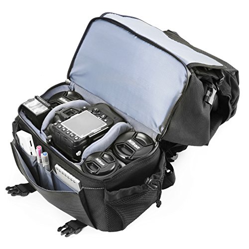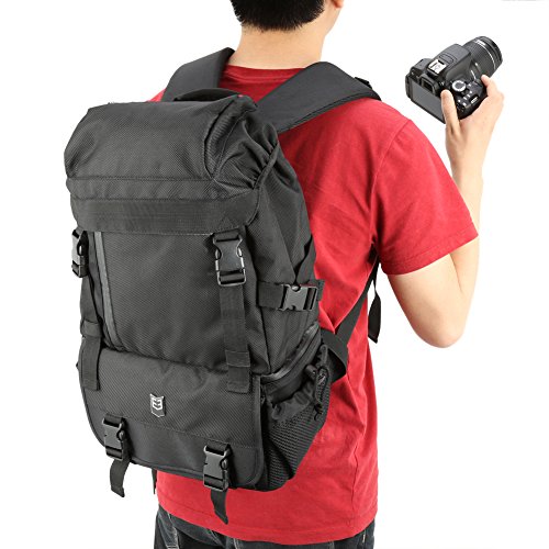 SLR Camera Backpack Evecase Outdoor Water Resistant MultiPurpose Daypack with Tablet Compartment and Padded Dividers for Nikon Canon Sony and Other Camera and Lens, Tripod, Other Accessories - Black