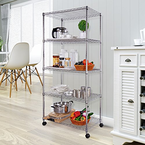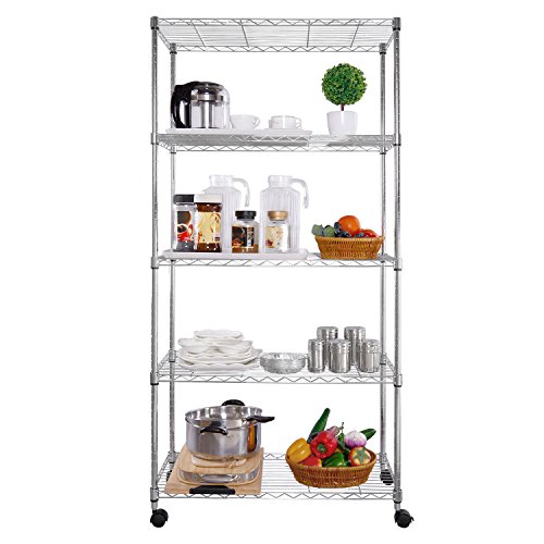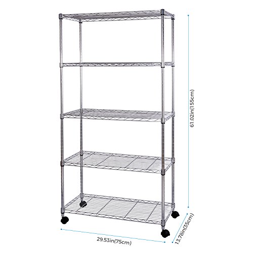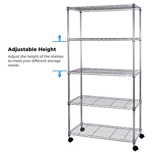 Lifewit 5 Tiers Wire Shelving Unit on Wheels, Multifunction Heavy Duty Storage Rack for Kitchen/Garage/Workshop/Living Room