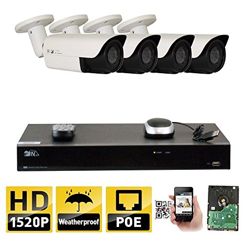 *****New Technology***** The latest H.265 video compression! 8 Channel H.265 Max 4K/8MP NVR with (4) H.265 4MP 1520P 2.8-12mm Manual Zoom Varifocal Lens Weatherproof PoE IP Cameras