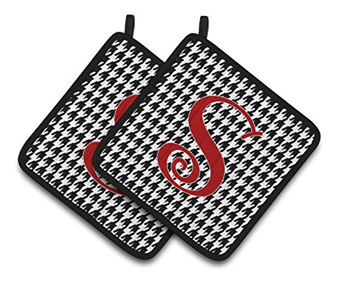 Caroline's Treasures Monogram Initial S Houndstooth black Pair of Pot Holders CJ1035-SPTHD, 7.5HX7.5W, Multicolor