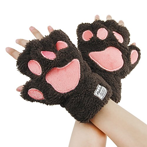 Features Fingerless design, perfect for using smartphone, iPad and laptop in cold winter With hanging string, can hanging on the sneck, convenient to carry when don't needed Great for Christmas Party Soft and comfortable to wear Hand-wash be suggested Adorable bear claw design, great gift for Christmas to friends and families 0