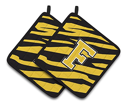 Caroline's Treasures Monogram Initial F Tiger Stripe - black Gold Pair of Pot Holders CJ1026-FPTHD, 7.5HX7.5W, Multicolor