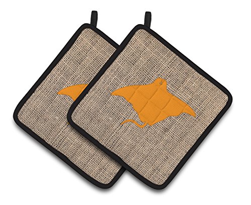 Caroline's Treasures Manta Ray Faux Burlap & Orange Pair of Pot Holders BB1014-BL-OR-PTHD, 7.5HX7.5W, Multicolor