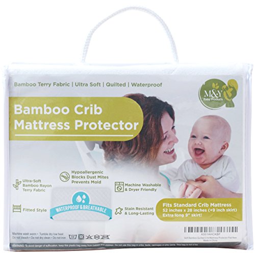 -. Feature : THE SECRET TO A GOOD NIGHT'S SLEEP: M&Y's ultra-soft quilted bamboo mattress protector provides your baby with premium comfort and avoids any crinkle-like noises. Bamboo has some amazing insulating properties. This means the fabric will help your baby stay warmer in winter and cooler in summer / PROTECT YOUR BABY: Never be worried about dust mites, allergens, mold, or bacteria anymore; This mattress cover is hypoallergenic and non-toxic; It also protects from wetness, odors and household germs / 100% SATISFACTION OR YOUR MONEY BACK: There is no risk for you. We provide you with a no questions asked guarantee - NOT limited to only 30 days like our competitors'; Order your M&Y Crib Mattress Protector now by clicking 'Add to Cart' on the upper right / PEACE OF MIND: Bamboo is super absorbent: often quoted as 40% more absorbent than cotton. The waterproof mattress cover protects your baby's mattress from any spills and leaks; Yet it's breathable and stain resistant; Built to last, this durable, high quality mattress cover withstands countless washing / drying cycles / EASY CLEANING & PERFECT FIT: Guarantees a secure and snug fit around a standard crib mattress (size: 52 x 28 x 9 inches); Easy on and easy off; Machine washable and dryable on low heat for best results; and unlike most competitor products this mattress protector will not shrink after washing and drying