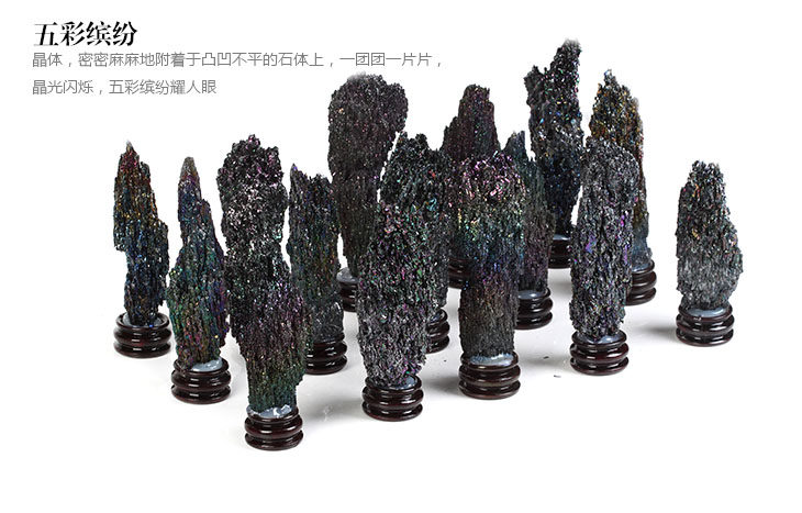Colorful mineral in copper and iron based on multi-metal deposits of oxidized zone, look around, and islets, such as pepper seeds, roe as large, was pretty colorful colored small crystals, packed attached to uneven stone body on a round piece of crystal light flashing, colorful, dazzling lit. Her strange glory, it is easy to make people think of a rainbow after the rain, colorful mineral called "the southern cornucopia"