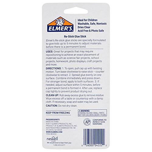 Elmer’s Re-Stick Restickable School Glue Sticks, 22 Grams Each, 2 Count