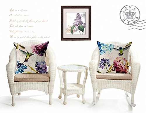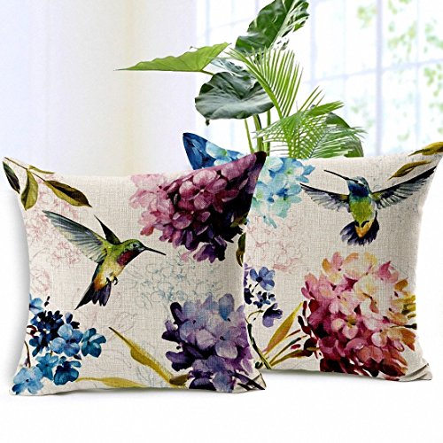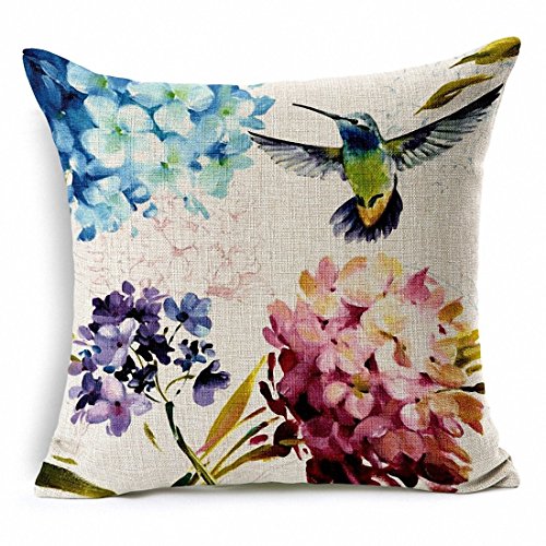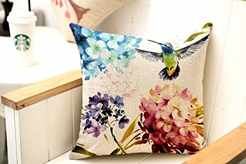 E-sunshine® Cotton Blend Linen Square Throw Pillow Cover Decorative Cushion Case Pillow Case 18 X 18 Inches / 45 X 45 Cm, Hummingbird and Flower (001)