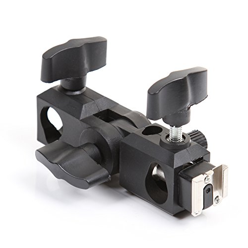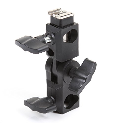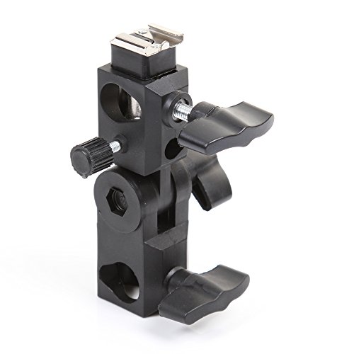Features: Umbrella bracket/holder flash adapter/mount with detachable hotshoe adapter. Made of metal and plastic. Can be mounted on 16mm head tripods. Vertical or horizontal position. Umbrella mount. Position range: 0-180 degrees. Universall for flash lamps (but not for SONY/MINOLTA) 1.Metal head for flash lamp - ISO shoe 2.Lock of photo umbrella mount 3.Photo umbrella mount 4.Lock of tripod mount Package includes: 1x Holder 0 |
