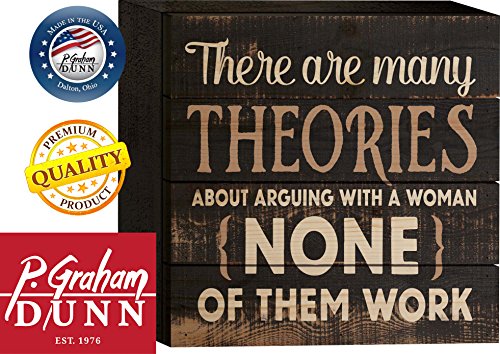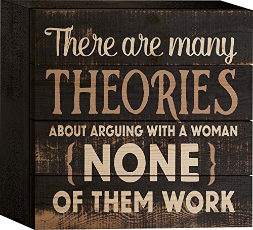 Theories About Arguing With a Woman Humorous Distressed 6 x 6 Wood Plank Design Wall Box Sign