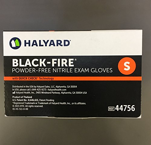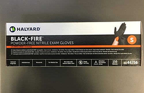 HALYARD BLACK-FIRE 44756 Nitrile Exam Gloves, Small, Black/Orange (Pack of 150)