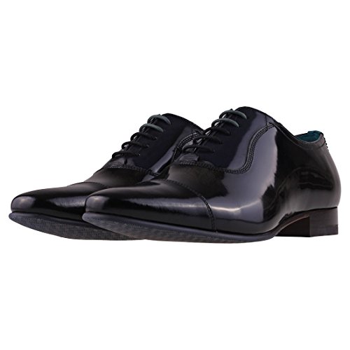 Binding : Apparel Product Description The Mens Karneyh from Ted Baker combines a Patent leather upper with a durable Rubber sole. These Shoes feature Lace-up fastening, cushioned insole and Leather Textile lining. Finished with Ted Baker branding, the style 9-17074 comes in a Black Navy colourway. 0