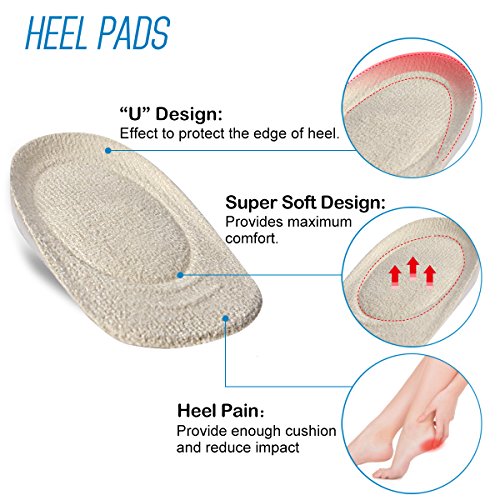 1.Heel Cups: (1) Provide extreme cushioning (2) Reduce foot pain fatigue (3) Adjust the size of shoes 2.Forefoot Cushions: (1)Help metatarsal area of the foot relief pain. (2)Helps to reduce pain and discomfort of your forefoot. (3)Help reduces callus and corns on the ball of the foot. 3.Heel Grips: (1) Protects from blisters and soreness. (2) Heel lines to prevent shoes from slipping. Using Method: Step 1: Clean your shoes and keep them dry. Step 2: Adjust the position until you feel comfortable. Step 3: Remove plastic backing. Step 4: Stick the pads to the shoes. Package Include: 2* PCS Heel Cups 2 * PCS Forefoot Cushion 4* PCS Heel Grips Your satisfaction is our top priority. We believe in the quality of our products; we think you should be given a chance to try us out without any risk. That's why we're able to back it up with Our No Risk 100% 0